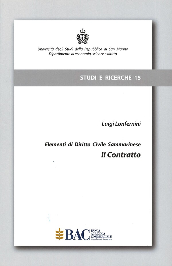 2016, L. Lonfernini, Elementi di diritto civile sammarinese: il contratto, BAC Editore.
