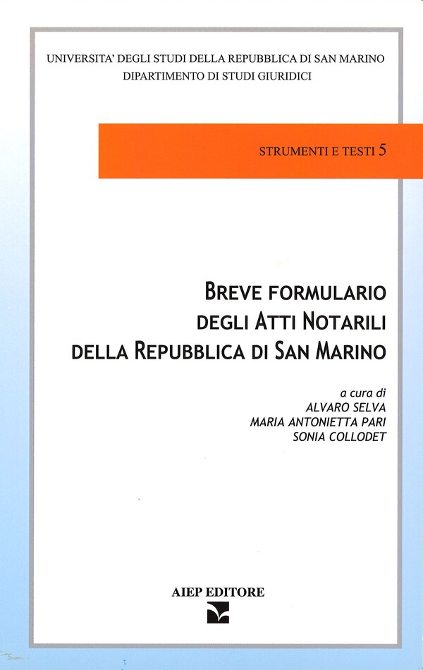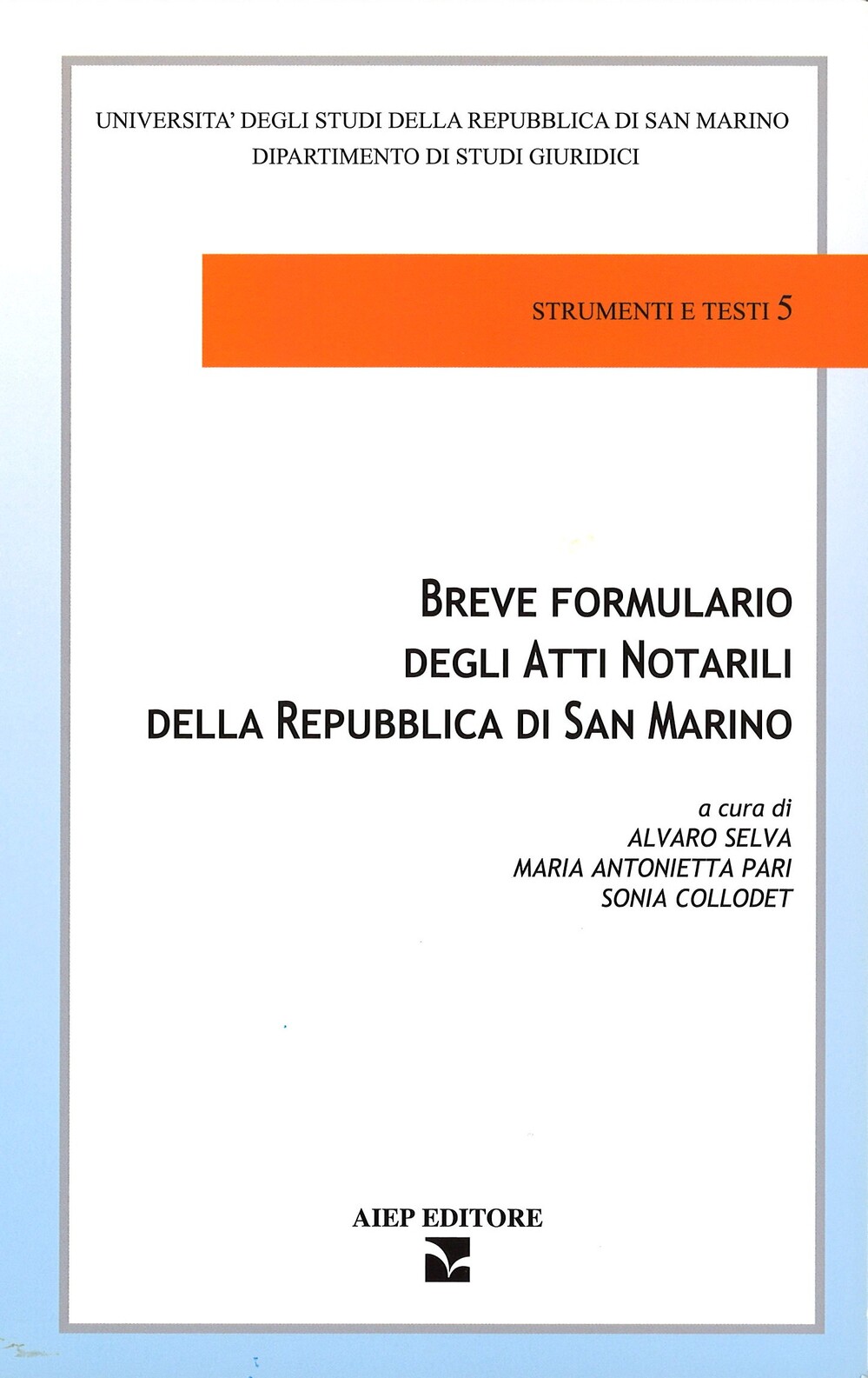 2009, A. Selva, M. A. Pari, S. Collodet, Breve formulario degli atti notarili di San Marino.