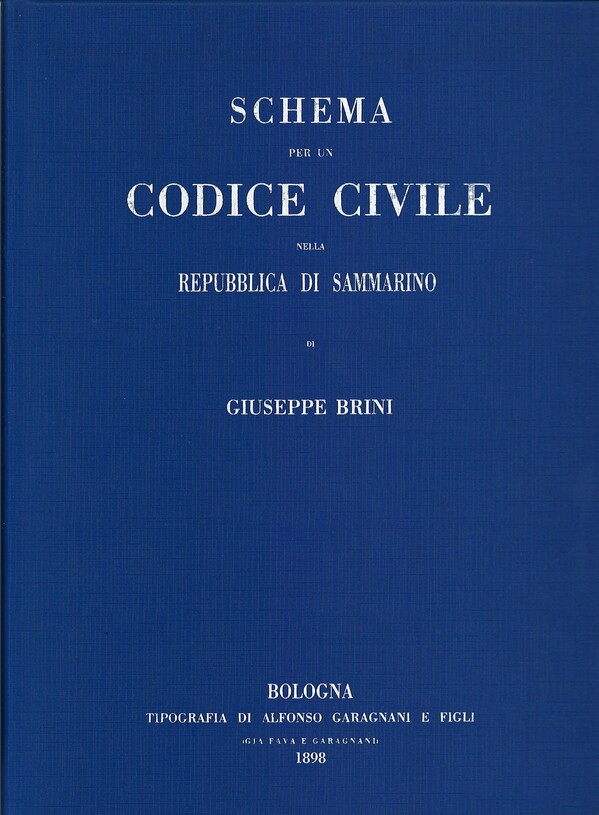 1898, G. Brini, Schema per un codice civile nella Repubblica di San Marino.