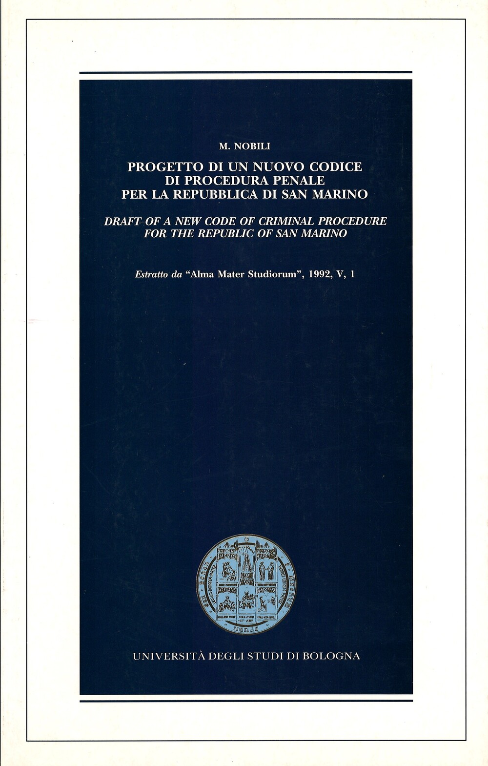 1992, M. Nobili, Progetto di un nuovo codice di procedura penale per San Marino.
