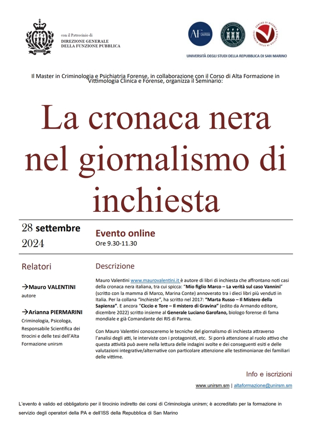 2024, Convegno LA CRONACA NERA NEL GIORNALISMO DI INCHIESTA