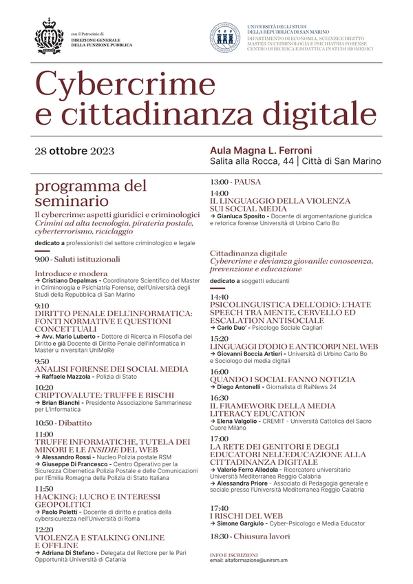 2023, Convegno CYBERCRIME E CITTADINANZA DIGITALE