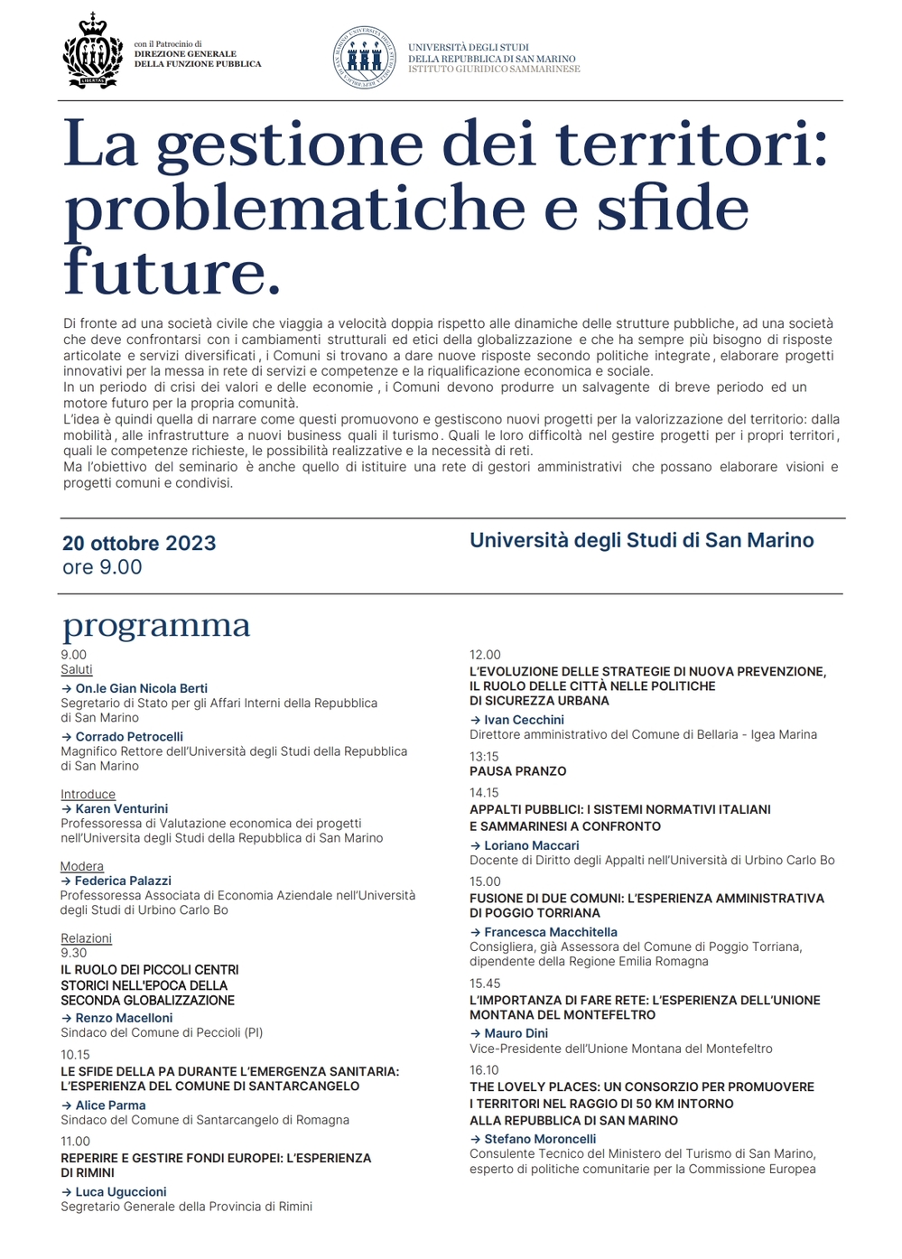 2023, Convegno LA GESTIONE DEI TERRITORI: PROBLEMATICHE E SFIDE FUTURE