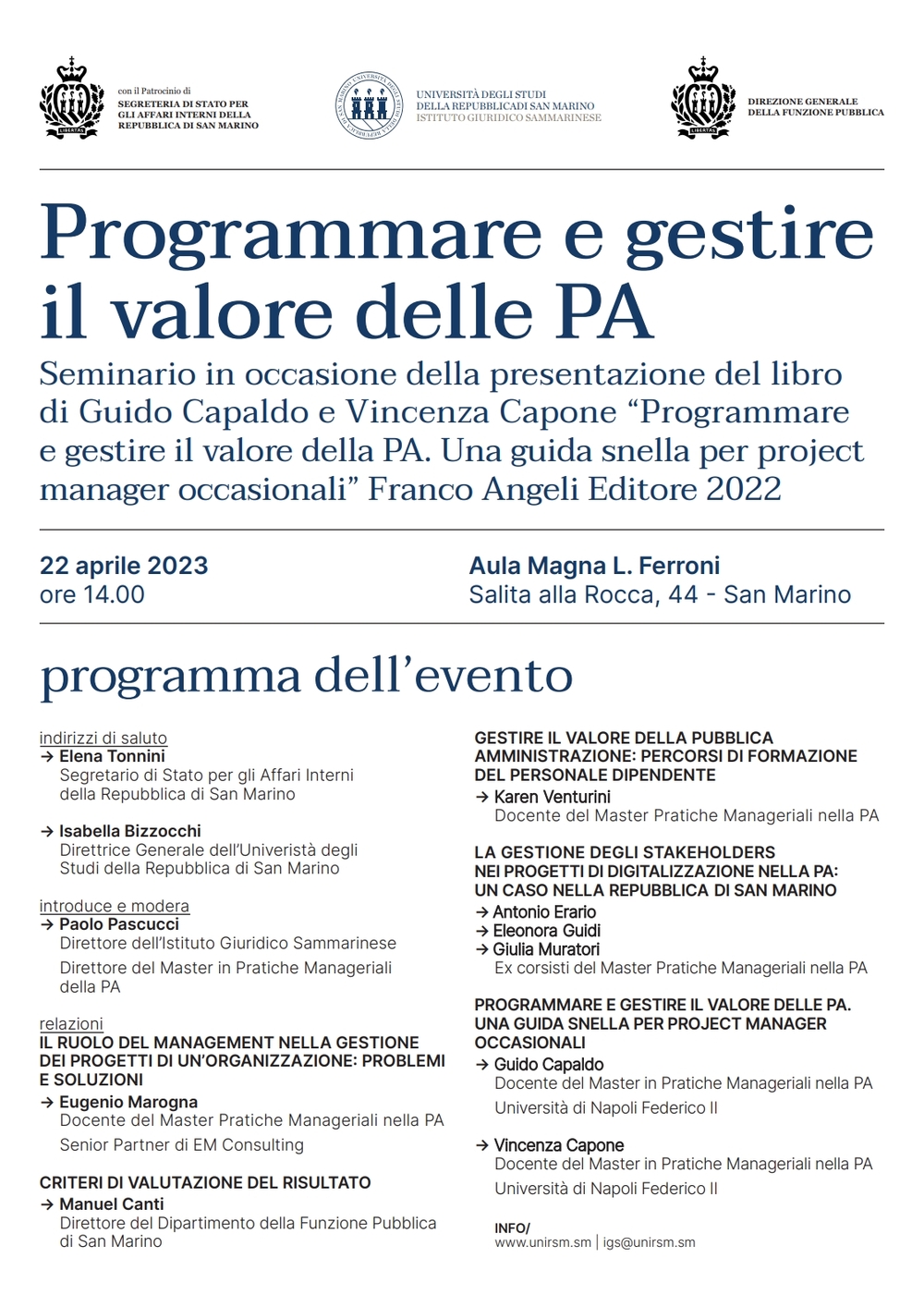 2023, Convegno PROGRAMMARE E GESTIRE IL VALORE DELLA PA