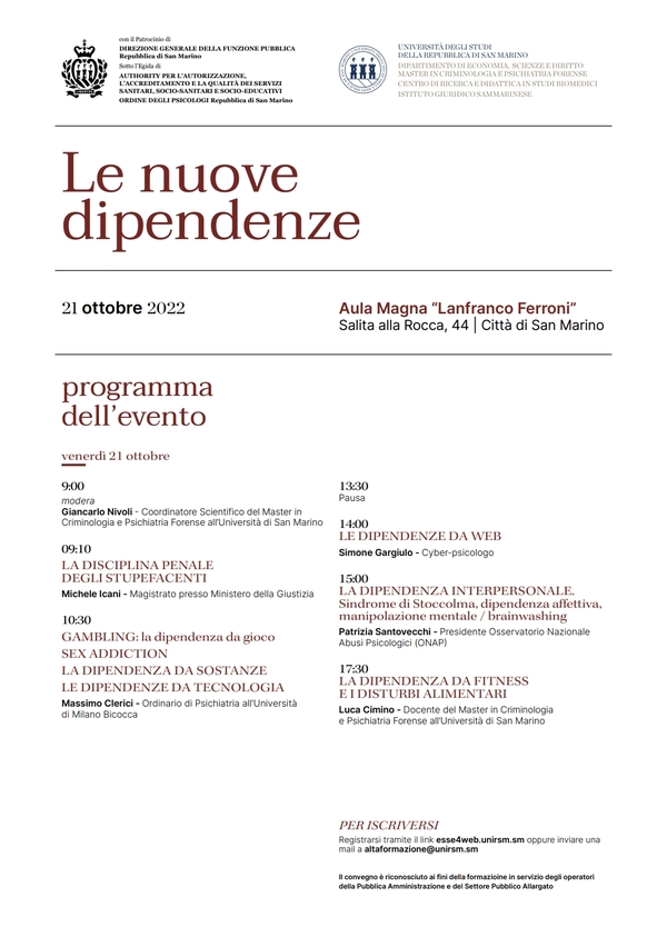 2022, Convegno LE NUOVE DIPENDENZE