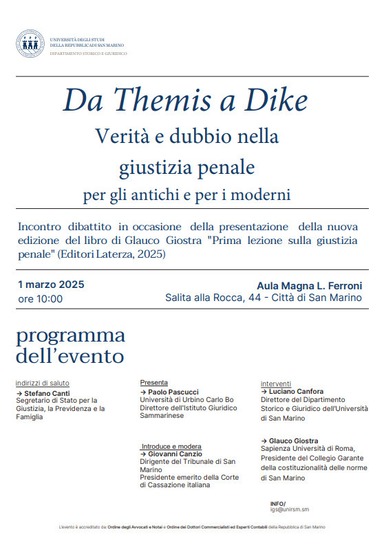 "Da Themis a Dike - Verità e dubbio nella giustizia penale per gli antichi e per i moderni"