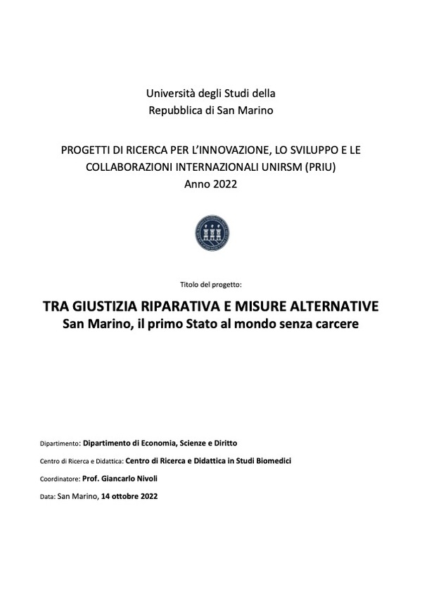 2022, Tra giustizia riparativa e pene alternative: San Marino il primo Stato al mondo senza carcere.