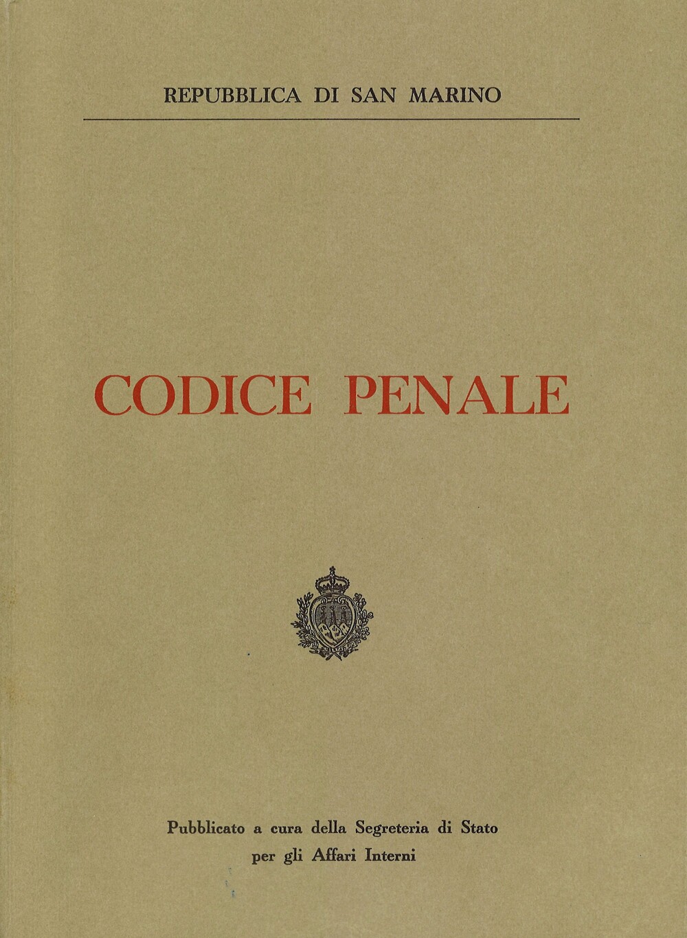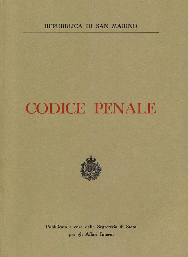 Codice Penale della Repubblica di San Marino con le norme di attuazione e le relazioni illustrative.Pubblicato a cura della Segreteria di Stato per gli Affari Interni.1976