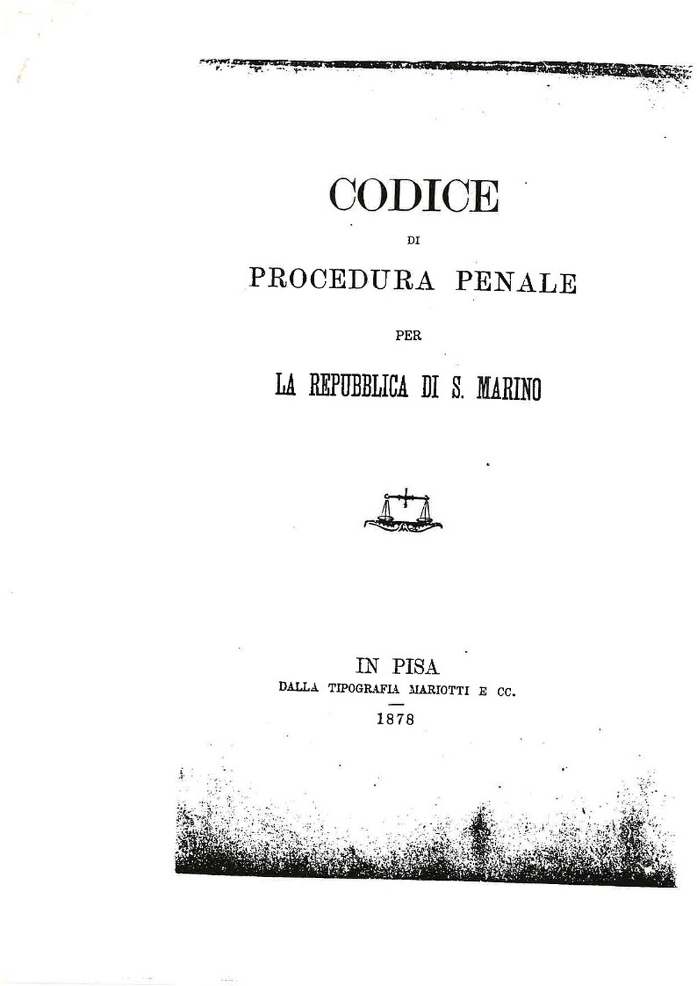 Codice di Procedura Penale per la Repubblica di San Marino, 1878.