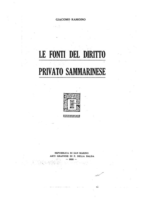 1928, G. Ramoino, Le fonti del diritto privato sammarinese.