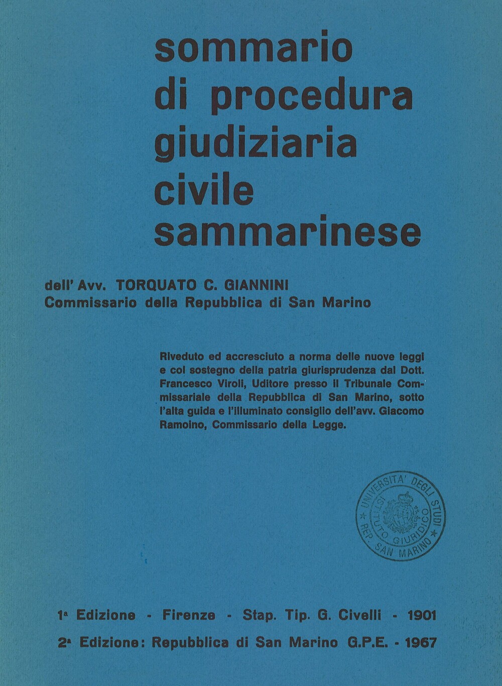 1967, T. C. Giannini, Sommario di procedura giudiziaria civile sammarinese.