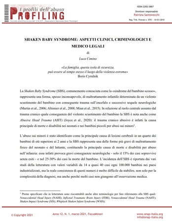 2021, L. Cimino, Shaken baby syndrome: aspetti clinici, criminologici e medico legali.