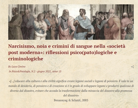 2022, L. Cimino, Narcisismo, noia e crimini di sangue nella società post moderna.